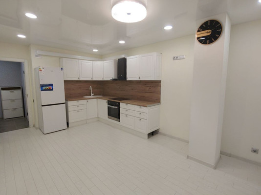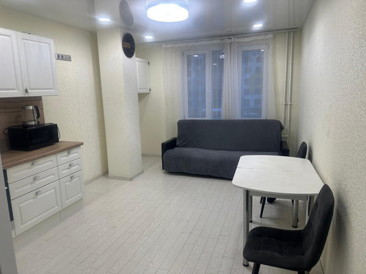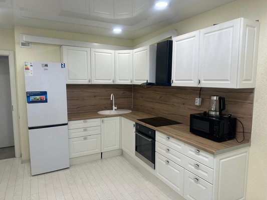 В квартире сделан дизайнерский ремонт. Все для комфортного проживания. На кухне есть стол , стулья и диван.