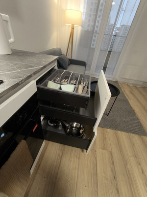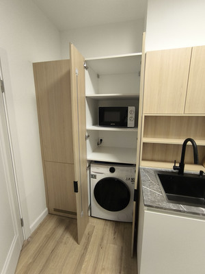 Вся мебель и техника новые: холодильник, плита, микроволновка, чайник, стиральная машина — всё для комфортного проживания.