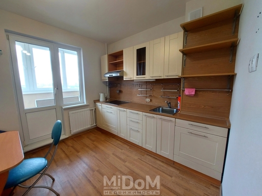Просторная, 39 м кв, большая комната, вместительная кухня с выходом на застекленный балкон.