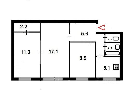 - Общая площадь 55.5 м²