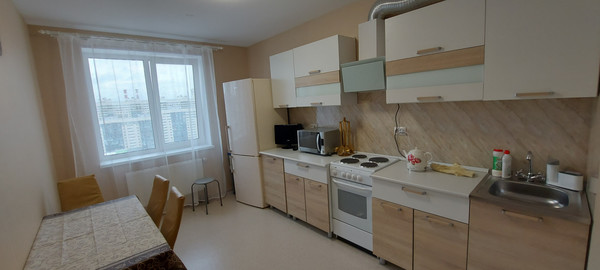 О КВАРТИРЕ:-Квартира сдаётся впервые.-Квартира светлая, тёплая, чистая, располагается на 16-м этаже.-Планировка с изолированными комнатами на две стороны. Очень хорошие видовые характеристики. С лоджии виден залив.-В квартире зимой тепло и комфортно, летом не жарко.-Общая площадь-75 м2, комнаты - 18+14+14 м2 соответственно и просторная кухня - 14м2, застеклённая лоджия, два санузла в кафеле. Просторная, оборудованная прихожая. -Одна комната пустая (будет установлена кровать), две остальные комнаты и кухня меблированы и оборудованы.-В квартире есть необходимая для комфортного проживания современная мебель и техника: диван-раскладной, угловой диван, шкафы, стол, стулья, оборудованная кухня, холодильник, варочная панель, духовой шкаф, эл.вытяжка, СВЧ-печь, эл.чайник, утюг, стир.машина, 2 телевизора. Также имеется минимальный набор посуды.-Входная дверь металлическая. Установлен домофон.-Интернет на выбор (есть несколько провайдеров).