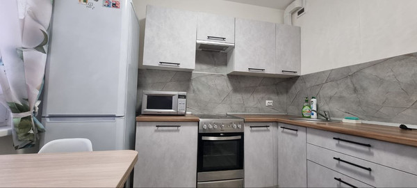 На балконе сушилка для белья. Кухня со всей техникой. Письменный стол. Все в выдержанном скандинавском стиле. Сдаётся на длительный срок.