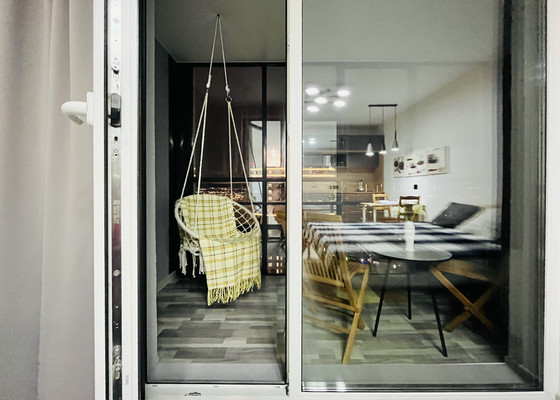 Есть все необходимое для комфортной жизни: встроенная кухня с варочной поверхностью, холодильник, стол, кровать, шкаф. С/у в кафеле с ванной и стиральной машиной. Просторная лоджия 5 кв.м с панорамным видом!