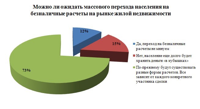 Профессионалы рынка не ждут массового перехода населения на безналичные расчеты при сделках с недвижимостью. Более 70% специалистов высказали такое мнение в ходе опроса на апрельском Жилпроекте.