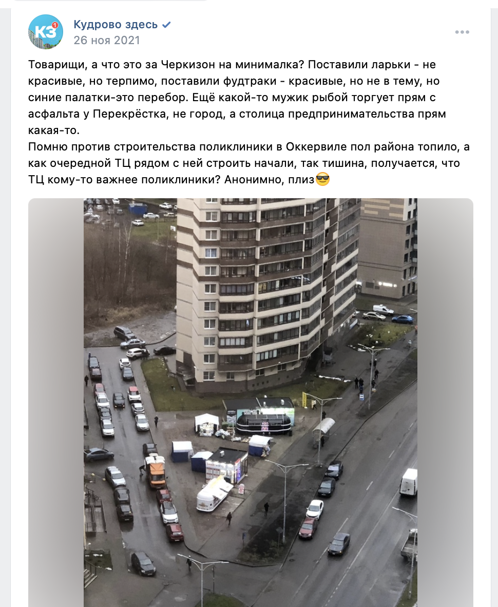 Список ведомств, куда обращались недовольные кудровчане, уже довольно длинный. Роспотребнадзор провел экспертизу. Но она установила, что выброса вредных веществ нет. Удивительно, да и только! Местная администрация заявила, что и их “полномочия всё”, дескать, не отвечаю за работу фудтрака. И вообще это нестандартный объект торговли. Обращались жители и в Пожарный надзор. Но там заявили, что занимаются безопасностью только в помещениях, а не на транспорте. И вот здесь уже небольшой юридический казус. По закону хоть фудтрак - фургон на колесах - ездить и торговать он не может. За ним закреплено определенное место. Владельцы фудтраков арендуют место у владельца. И не могут ездить за покупателями. А жаль, так бы и овцы были целы, и волки (живущие не в соседних домах) были бы сыты. Вот, например, что написал в группе Жизнь в Кудрово местный житель Алексей Афанасович: