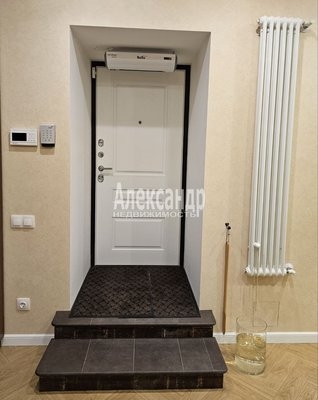 Выполнен дорогой евроремонт с заменой всех коммуникаций, на полу керамогранит с подогревом, шпонированные поворотные двери, камин, в санузле инсталляция и тропический душ с подсветкой, шкаф-купе, панорамное зеркало и стильный вертикальный радиатор отопления в прихожей. Помещение двухстороннее, имеет 4 окна (мультиокна, зеркала с отражением), основной и дополнительный вход (с тепловой завесой), есть сигнализация.