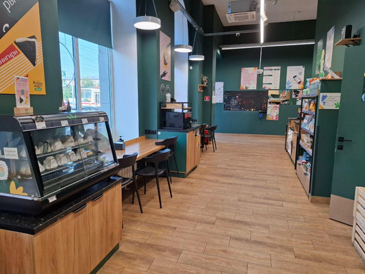 2. Сосед (дверь в дверь) ДоДо с огромным трафиком.3. Студенты рядом, в обеденное время самый большой трафик.4. Хороший ремонт, вентиляция и кондиционирование (атермальная пленка на окнах, наружная реклама), дорогой свет, санузел общий для посетителей и персонала. Минимальные вложения для арендатора (по сути только стены перекрасить в свой стиль, и то не обязательно).