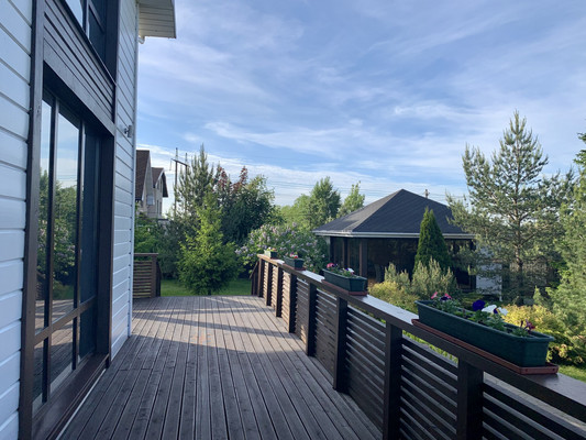 Арт. 70859245 Продается семейная усадьба, не требующая дополнительных финансовых вложений.Предложение «Все включено» - это участок с ландшафтным дизайном 33 сотки, жилой дом, гостевой дом – банный комплекс, застекленная беседка, зимний вольер для собак, тепличка, огородик.Вся мебель, кухня с бытовой техникой и электроникой, все оборудование и предметы интерьера могут стать Вашими. Здесь ни на чем не экономили. Все сделано со вкусом, душой и большой любовью. Жилой дом 330 м2 в элегантном скандинавском стиле и светлых тонах, полностью обустроенный, обжитой и подтвердивший свое качество и надежность. На первом этаже кухня – гостиная с немецкой бытовой техникой, белой кожаной мягкой мебелью финского производства. Итальянский камин с отделкой из гранита на дровах для романтических вечеров. Санузлы на каждом этаже оборудованы элитной сантехникой от Jacob Delafon. В доме есть семейная баня с парилкой, душевой и выходом на террасу. Две спальни и кабинет на втором этаже и одна спальня на первом. Видео домофоны на каждом этаже. Панорамное остекление, второй свет в архитектуре, большое количество террас из массива лиственницы делают этот дом воздушным и уютным, а фасадное и уличное освещение в темное время дня подчеркивает красоту дома и всего участка.Гостевой дом 186 м2 - банный комплекс построен в еином стиле с жилым домом, его можно использовать для постоянного проживания. Внутренняя отделка помещений – лиственница. Кухня- гостиная полностью оборудована, две спальни, просторная баня, купель, душевые и санузел.Участок 33 сотки с ландшафтным дизайном. Дренажная система участка сделана профессионалами, участок сухой даже после проливных дождей.Ограждение участка – кованый забор на ленточном фундаменте с кирпичными столбами. Дополнительные постройки - зимний вольер для собак, подсобное строение, тепличка, огородик. Фундамент свайно-ростверковый, глубина 2 метраСтены сип-панели 17 смВнутренняя и внешняя отделка стен имитация бруса. Сосновые доски делались на заказ с