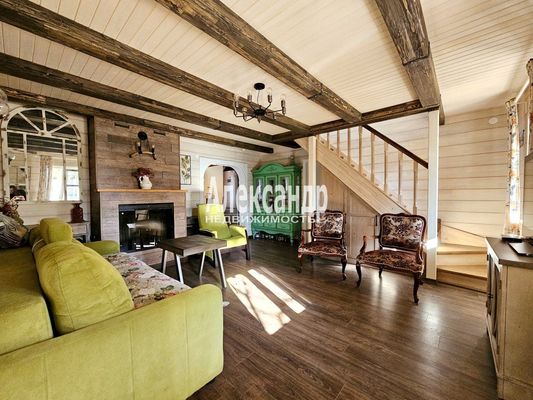 В доме продуманное зонирование пространства: старая часть дома, где гостиная 23 кв.м., кухня 10,1 кв.м, 3 спальни 15,9+12,7 (с камином)+7,1, совмещенный санузел и котельная, отделена от новой, в которой гостиная 16,5, собственный санузел с ванной 5,5 и спальня 13,7 кв.м на втором этаже.