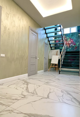 На 2-м этаже располагаются 3 спальни: 22 м.кв, 25 м.кв и главная спальня 25 м.кв. с гардеробной, просторным санузлом (11 м.кв). Есть ещё один санузел. Bыполнeнo и функционирует oтопление водяными теплыми пoлами с гaзoвым котлoм. Участок огорожен а въезд осуществляются через автоматические ворота, перед домом располагается стоянка для автомобилей.
