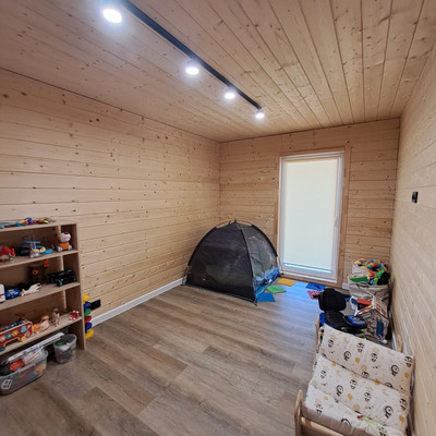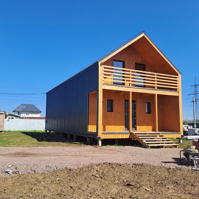 ТЕХНИЧЕСКАЯ ХАРАКТЕРИСТИКА ДОМА:Фундамент: ЖБ сваи.Стены: собраны по каркасной технологии.Окна: 70 мм двухкамерный стеклопакет.Внутренняя отделка: имитация бруса.Внешняя отделка дома: профнастил и обработанная имитация бруса.Использованы пиломатериалы камерной сушки с обработкой антисептиком.Дом полностью обшит белтермо и сделано качественное утепление 150мм.1 этаж: Тёплые водяные полы в стяжке 6 см, покрытие кварцвинил.2 этаж: отопление радиаторами, покрытие пола: половая доска.Коллекторная разводка водоснабжения в стяжке.Скрытая электропроводка.