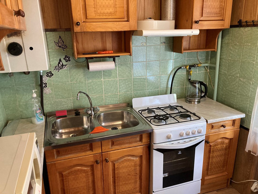 Квартира в хорошем состоянии, светлая, теплая. Новые стеклопакеты, двойная дверь, санузел раздельный. Есть вся необходимая мебель: угловой диван, мебельная стенка, двуспальная кровать, очень вместительный угловой шкаф, в прихожей трехстворчатый шкаф-купе, мебель на кухне. Из бытовой техники – холодильник, стиральная машина, два телевизора, микроволновая печь, чайник, утюг. Квартира с балконом.