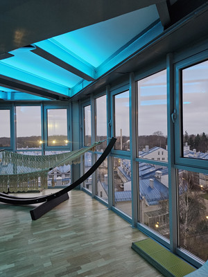 Огромное светлое пространство с окнами в пол открывает виды на захватывающие дух закаты над Сестрорецком.