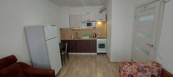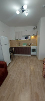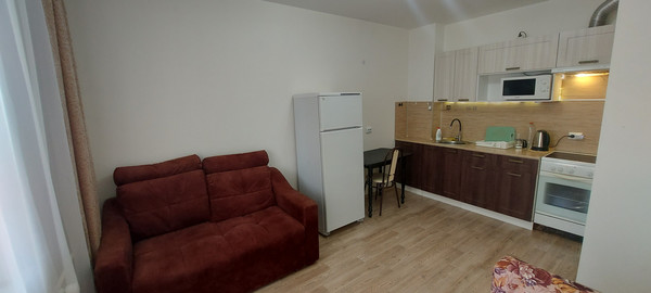 О квартире:-Квартира светлая, тёплая, чистая, располагается на 6-м этаже 25-ти этажного нового дома. Евро-ремонт от застройщика.-Общая площадь-33 м2, изолированные комната-спальня - 14м2, кухня-гостиная - 16м2, с выходом на застеклённый балкон, санузел совмещённый в кафеле;-В квартире есть необходимая для проживания мебель и техника: 2-х спальная кровать, шкаф, стол, стулья, 1,5 спальный диван, 1-спальный диван, эл.плита с духовкой, эл.вытяжка, холодильник, стиральная машина, СВЧ-печь, эл.чайник.-Интернет на выбор (есть несколько провайдеров).