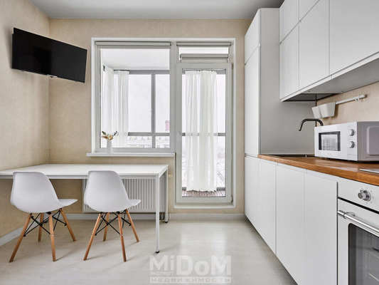 Квартира небольшая, но продумана до мелочей: здесь хватило места и для двух вместительных шкафов, и для полноценной кухни с посудомойкой и духовкой. Полностью готова к проживанию — новый ремонт и мебель.