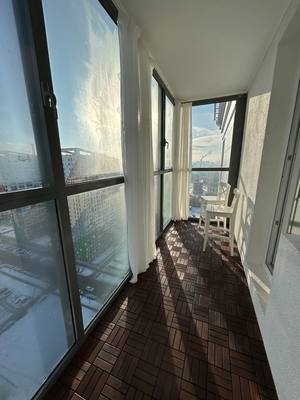 Изюминка квартиры — большой панорамный балкон. С него открывается вид на Неву и город. Идеальное место для встречи рассвета за утренним кофе или вечерних посиделок.