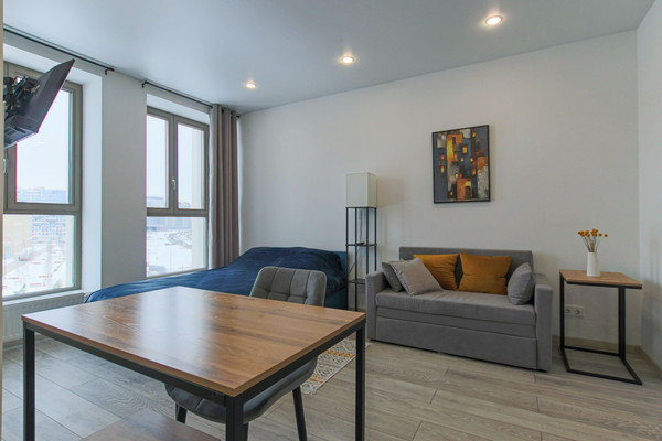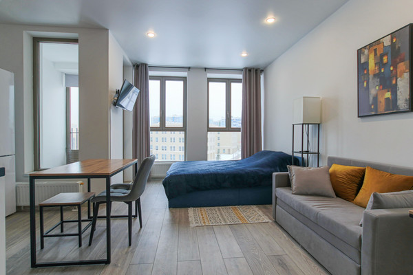 Арт. 132054390 Предлагаем вашему вниманию просторную студию 30 кв. м. в ЖК Golden City.ВАЖНО! Все предметы мебели, техники, текстиля НОВЫЕКвартира сдается на длительный срок БЕЗ КОМИССИИ аккуратным арендаторам без животных.Оборудована необходимой мебелью и техникой (стиральная и посудомоечная машина, холодильник, духовой шкаф, варочная панель, вытяжка, микроволновка) все новое, сдается впервые.