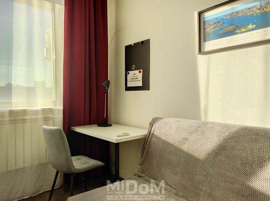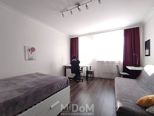 Комната с широкой двуспальной кроватью и удобным раскладным диваном. В комнате два окна и балконная дверь, очень светло, при этом Ваш сон защитят шторы блэкаут. Также в комнате оборудовано два рабочих места и установлен вместительный шкаф-купе. Установлен КОНДИЦИОНЕР.