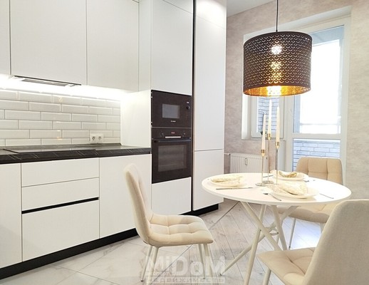 В квартире много света и воздуха – высокие потолки 3 метра, увеличенные окна и светлая отделка создают особую атмосферу Дома. Изюминкой квартиры стала комната отдыха с большим новым ТВ и удобными раскладными креслами. В спальне с гардеробной комнатой, отделенной шторой, и кабинетом раместилась удобная кровать шириной 160 см. Во второй комнате, которая может служить кабинетом, детской или гостевой спальней, установлен раскладной диван - раздвигается в спальное место шириной 150 см, а днем одним движением руки складывается для удобного сидения, отдыха, просмотра ТВ.