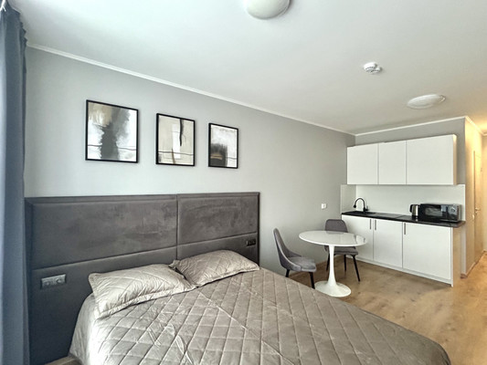 Квартира оснащена красивой и комфортной мебелью и техникой:двуспальная кровать одеяла, подушки