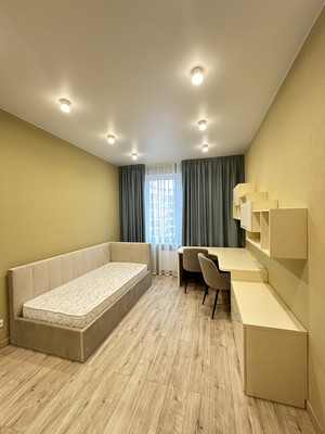 детская (кабинет): односпальная кровать, платяной шкаф, учебный стол, полки, комод;