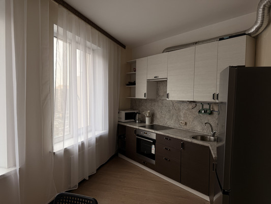 Просторная кухня, раздельный санузел(есть ванна), встроенная техника: духовка, холодильник, варочная панель - все для удобной готовки, набор приборов и посуды.