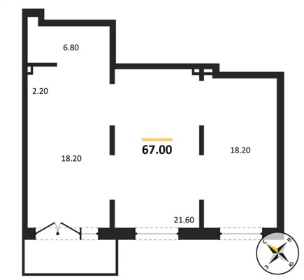Помещение с хорошей планировкой, третье от угла дома, 2 витринных окна на Муринскую дорогу с фасада, вход также с улицы.