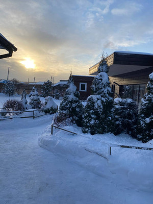 - Участок радует порядком: плодовые деревья , декоративные насаждения , теплица — всё зелено и ухоженно. - Дом с подсветкой по вечерам выглядит сказочно. - Круглогодичная беседка с панорамным остеклением — отдельная гордость . В ней уже есть кухня и техника, можно принимать гостей даже зимой, любуясь снежинками ️ за стеклом.