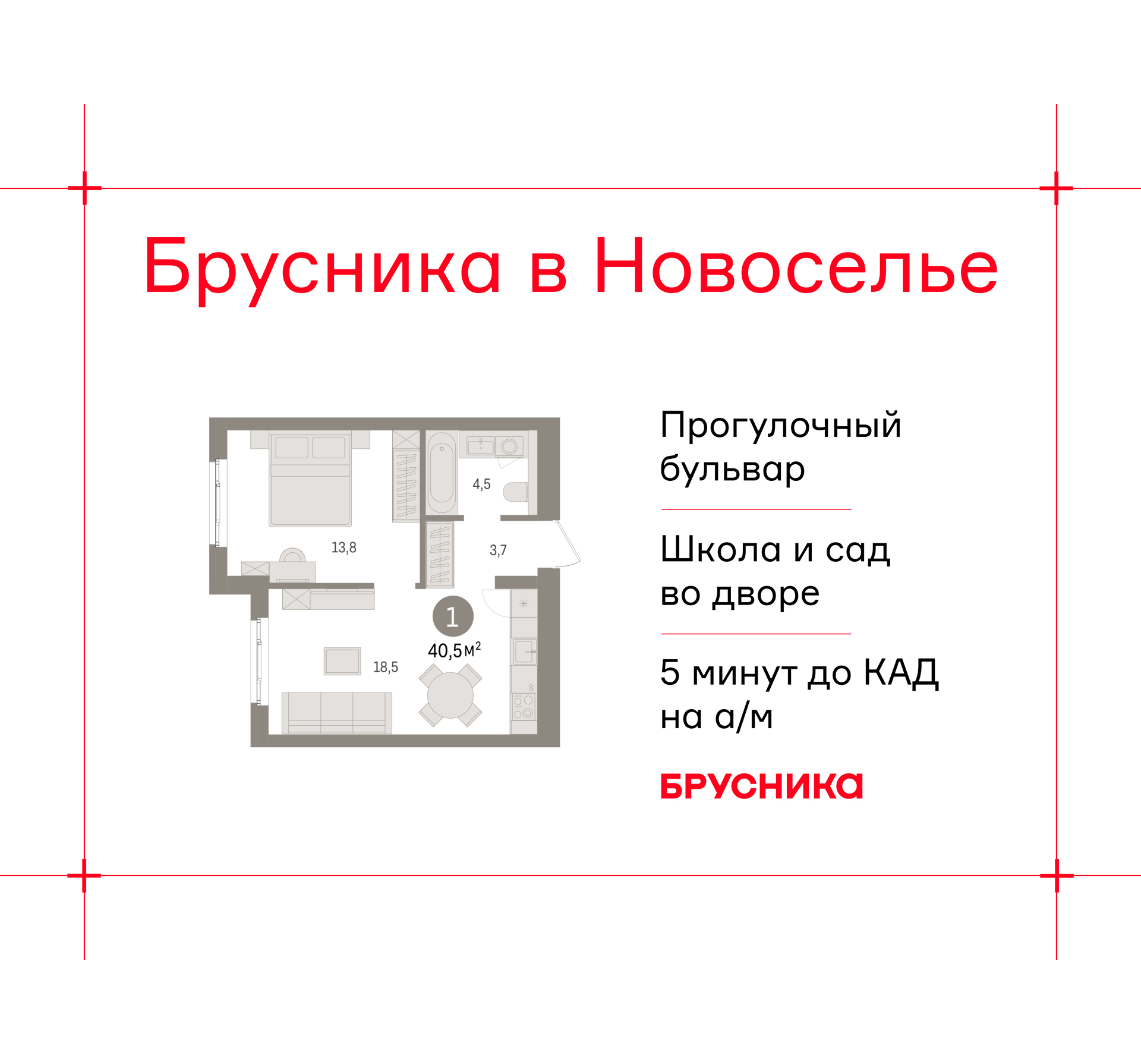 Просторная 1-комн. квартира с предчистовой отделкой в ЖК "Брусника в Новоселье" на 3 этаже. Общая площадь: 40.49 кв.м., жилая: 13.8 кв.м., площадь просторной кухни-столовой: 18.5 кв.м. Все окна выходят на одну сторону. В квартире один совмещенный санузел. Высота потолков 2.7 м. Дом монолитный, многоподъездный, переменной этажности, от 8 до 9 этажей. Квартира находится во 2-й секции высотой 8 этажей в корпусе 2. На этаже 8 квартир. В подъезде 1 грузовой лифт. Окончание строительства - 4 квартал 2027 года. Оформление сделки по договору долевого участия. Новоселье — это городской поселок в Ломоносовском районе Ленинградской области. Он расположен в 5 км к югу от Финского залива, на самой границе региона. Вдоль поселка проходит Кольцевая автомобильная дорога, а сразу за ней начинается Санкт-Петербург — Красносельский район и Стрельна. Район зелёный и тихий, с разных сторон его окружают Шунгеровский заказник, Гореловский лес и дачные поселки. Есть вся необходимая инфраструктура: уже построенные детские сады, школы, клиники, торговые центры, ледовая арена. Так Новоселье сочетает в себе все преимущества городского комфорта и размеренной жизни рядом с природой. До выезда на КАД 5 минут, до ст. м. Ленинский проспект - 25 минут на а/м, до аэропорта Пулково - 30 минут на а/м. Брусника построит в Новоселье семь домов, в том числе башни и дома с разноуровневыми секциями. Высота зданий — от 8 до 12 этажей. Проект разделен на три очереди, на первом этапе мы возведём три дома в западной части квартала. В основе архитектурной концепции «Брусники в Новоселье» лежит лаконичность силуэтов и внимание к деталям. Мы разработали три фасадные темы, в основе которых лежит один прием — вертикальные и горизонтальные членения, реализованные за счет остекления балконов и лоджий, переменной этажности и цветового дробления фасадов. Выразительность последних достигается за счёт симметрии и использования декоративных элементов — карнизов и рамок вокруг окон. Входные группы мы заглубим относительно основной линии фасада, чтобы подчеркнуть входы в ритейл и места общего пользования. Материалы отделки будут приближены к натуральным. Первые этажи домов мы облицуем плиткой, имитирующей клинкерный кирпич. Кроме того, в проекте много террас, и все они разные: на первых этажах, на последних, угловые, с прямым фронтоном. Они расширяют пространство квартир и связывают их с природным контекстом. (AQID02509784)