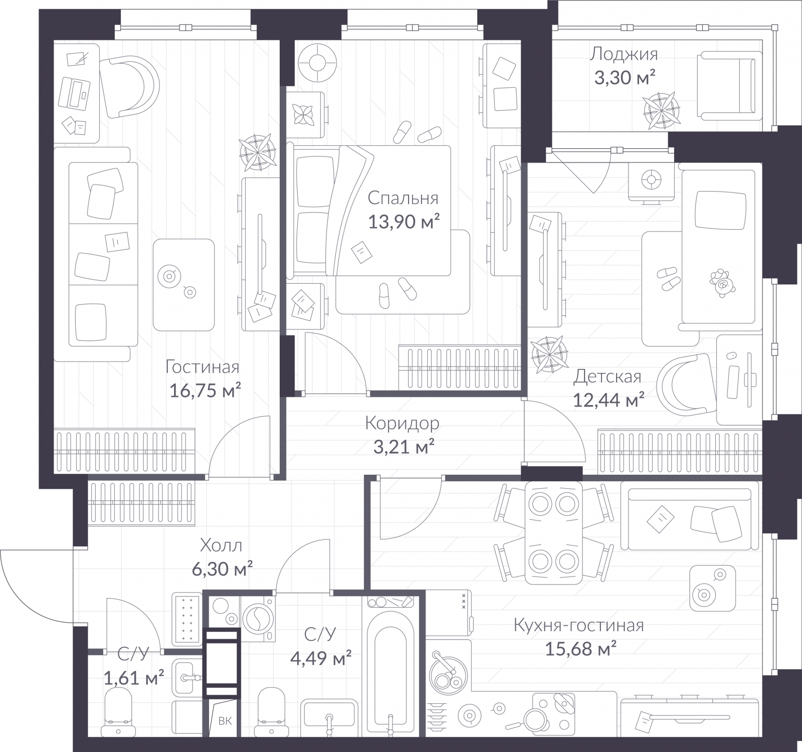- Общая площадь 76.03 м²