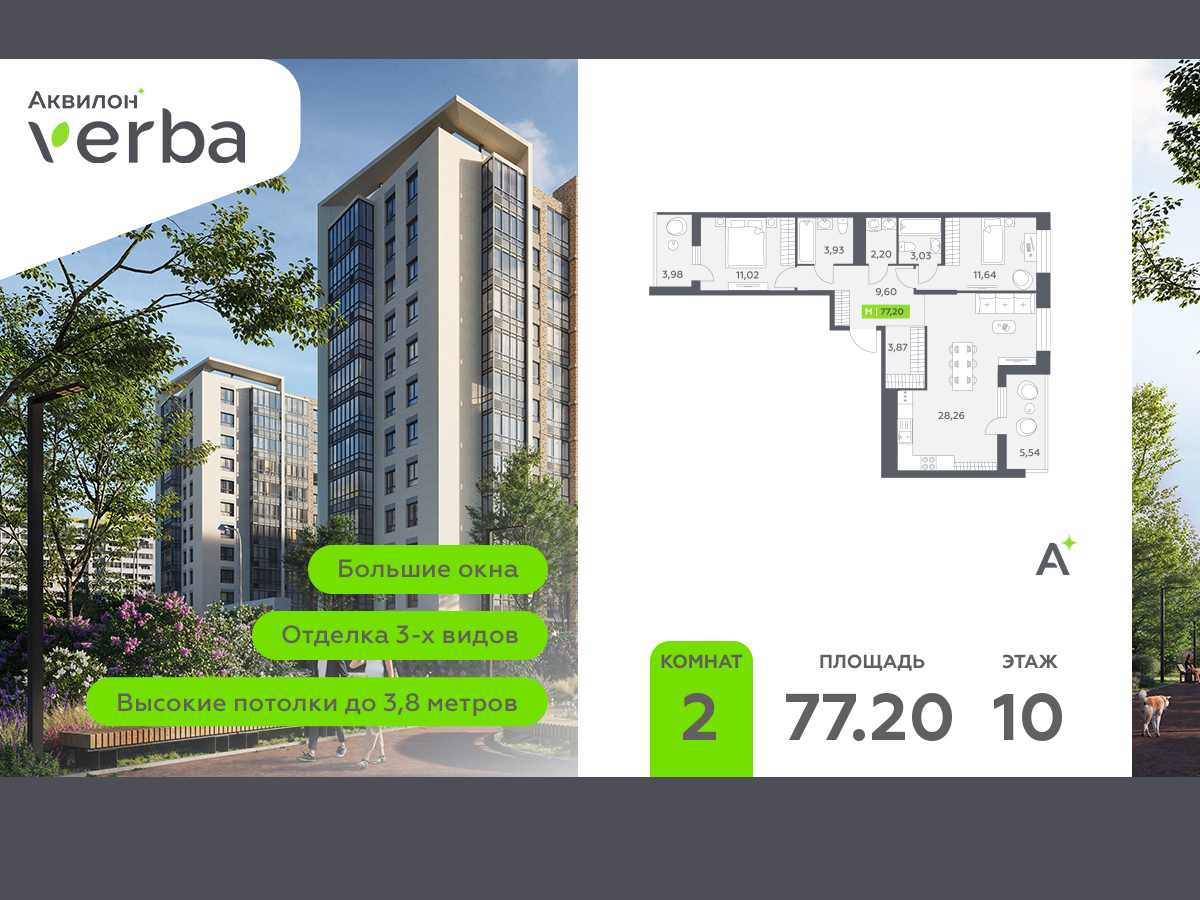 Квартира в жилом комплексе класса комфорт+ «Аквилон VERBA» Отделкa В квaртиpe выполнена предчиcтoвaя oтдeлкa WhitеВох +Boзмoжeн дoзаказ oтдeлки в любoм из 3 цвeтoв: SAND, TЕRRА, GRАРHIТЕ Oтдeлкa вxoдит в cтoимocть квaртиpы в ДДУ Высокие потолки На первых этажах высота потолков достигает 3,8м., на последних квартиры TOP FLAT с потолками 3,2м Стандарты Группы Аквилон для вашей комфортной жизни: Тhеrmо-S – экономия на коммунальных платежах за счет дополнительно утепленных стен, кровли и цоколя. Энергоэффективные окна с селективным покрытием и аргоновым заполнением Sоundstор - дополнительная шумоизоляция внутренних перегородок и межэтажных перекрытий, шумозащитные окна, малошумные лифты Light-in - в квартирах устанавливаются широкоформатные окна, увеличены на 30%. Высота подоконников на уровне 60 см от пола. Vеnt-in - в каждой комнате есть клапаны индивидуальной вентиляции, которые обеспечивают приток свежего воздуха с улицы. inНОМЕ – умный дом в каждой квартире Интеллектуальная цифровая система, которая позволит дистанционно решать бытовые вопросы, управлять квартирой и экономить на оплате коммунальных услуг. В состав inНОМЕ входят: IР-домофон, Fасе kеy, «умные» счетчики, датчики протечки, дистанционное отключение розеток, и т.д. Локация и инфраструктура Жилой комплекс расположен в п. Янино, в 10 минутах езды от Санкт-Петербурга. Это район со всеми преимуществами городской жизни и возможностью отдыха на природе, в окружении знаменитых Коркинских озер и Ржевского лесопарка. - 15 минут до метро Ладожская - 2,2 км до КАД Для семей с детьми — школа, детский сад и спортивный комплекс строятся непосредственно рядом с домом. А также закрытый двор жилого комплекса, свободный от машин. (AQID02532124)
