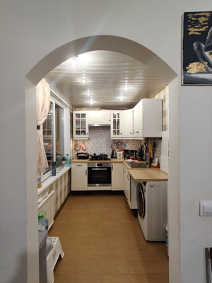 Дом расположен в глубине зелёного двора. Квартира переделана в 3-х комнатную с кухней-гостиной 17 кв.м.Хорошая квартира для большой семьи.Окна-стеклопакеты, заменены двери, кухня - Икеа, на полу ламинат.Шкаф-купе в коридоре, в прихожей шкаф для инструментов и скрытый шкаф для верхней одежды.Состояние квартиры хорошее, можно заехать и жить. Балкон большой застекленный. Окна в зеленый двор.Подъезд чистый,