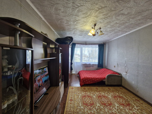 В центра посёлка Аннино, в удалении от трассы, недалеко от парка и Аннинского озера, на 3м этаже кирпичного пятиэтажного дома , расположена просторная 2х комнатная квартира. Комната 17.9 кв. м правильной прямоугольной формы, с балконом. Вторая комната 12.2 кв. м со встроенным шкафом во всю длину стены (см. фото и план квартиры). Если демонтировать шкаф, то к площади комнаты добавится еще 2.5 кв. метра. Общая площадь квартиры 44.8 кв. м.