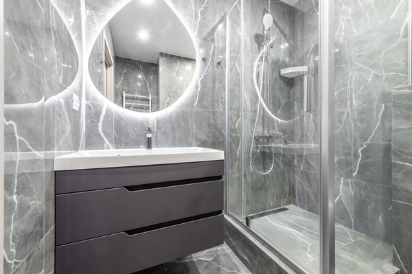 Санузел:тропический душ с терморегулятором,распашные стеклянные створки AM.PM,инсталляция Lavinia Boho,качественная сантехника,электрический полотенцесушитель.