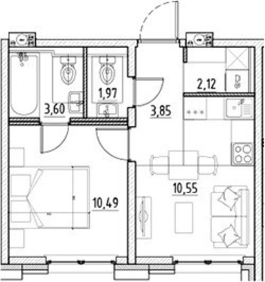 Квартира 1-комн., 33 м2, 4/9 этаж,