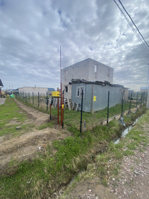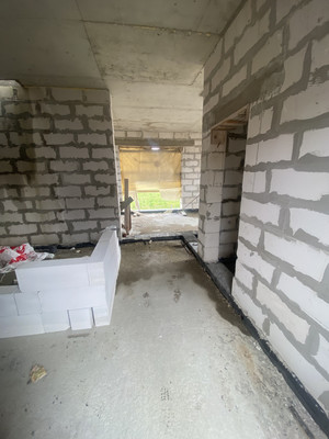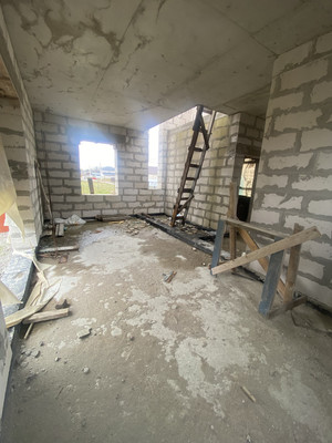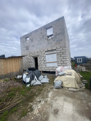 Построен 2-х этажный дом, не дострой, общей площадью 128 кв.м. Из Газобетона.~ залит пол плита фундамент 30 см + ростверк~ перекрытие монолитная плита 20 см~ силовые перекрытия 225 см~весь дом из 375 блока ЛСР~ на 2-м этаже установлена несущая стена, материалы все закуплены на внутренние стены.~ нет только крыши, финишная прямая.