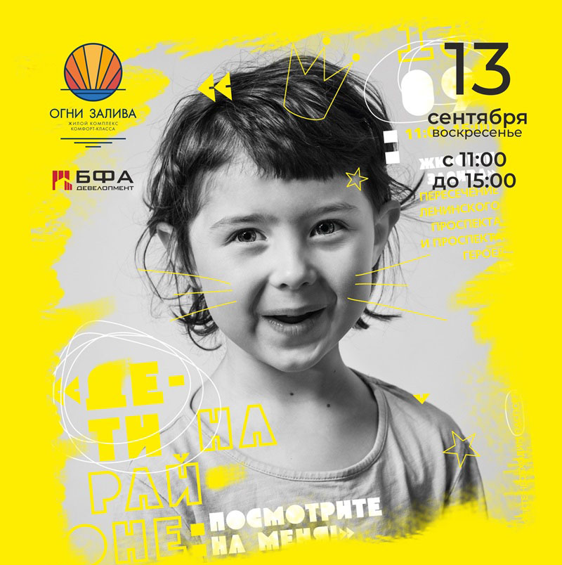 Приглашаем всех в воскресенье 13 сентября с 11.00 до 15.00 часов к офису «БФА-Девелопмент» на объекте ЖК «Огни залива» у остановки общественного транспорта «Проспект Героев» на пересечении с Ленинским проспектом.