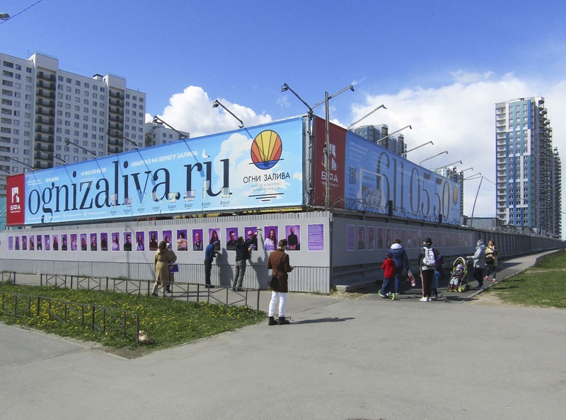 В среду 13 мая в Красносельском районе Санкт-Петербурга на пересечении проспекта Героев и Ленинского проспекта состоялось открытие фото-выставки «Огни большого города». Застройщик объекта «Огни залива» предоставил оборудованную площадь на строительном заборе жилого комплекса, где разместится 45 фото-портретов с историями творческих людей Санкт-Петербурга, которые оказались ограничены в самовыражении в обстоятельствах карантина. В проекте участвовали представители самых разнообразных профессий: галеристы и фотографы, режиссеры и оперные певцы, музыканты и художники, издатели и театральные продюсеры: Лариса Афанасьева, Анна Нова, Александр Галич, Мурат Кабардоков, Анна Титова, Наталья Сергеевская, все эти люди делают наш город ярким, теплым и интересным. Монтаж выставки проведен силами рабочих строительства без собрания граждан, выставка продлится 1 месяц.