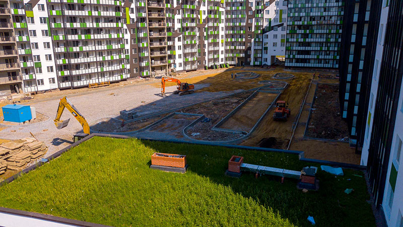 Строительство ЖК «ПаркЛэнд», который ГК «Полис Групп» строит в Кудрово, рядом с парком Оккервиль, переходит в стадию высокой готовности. В настоящее время на объекте ведется благоустройство внутреннего пространства двора: выполняются работы по прокладке пешеходных дорожек, устройству газонов, подготовке мест для установки детских площадок и зон отдыха. На 50% выполнены работы по уличному освещению.