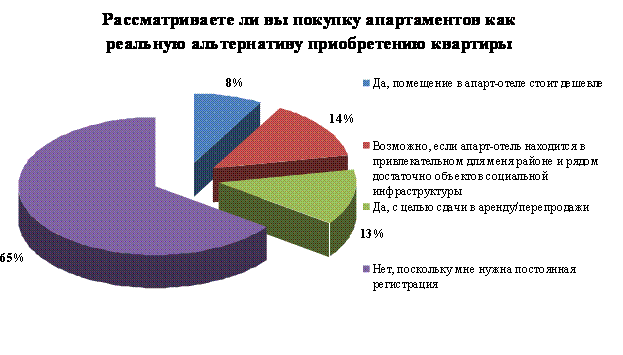 При этом 65% опрошенных утверждают, что при покупке жилой недвижимости для них, в первую очередь, важно получение постоянной регистрации. Но апартаменты имеют статус нежилого помещения, что не предполагает прописки. Однако, выходом из ситуации, по мнению Андрея Ульнырова, может стать временная регистрация на 5 лет с дальнейшим ее продлением.