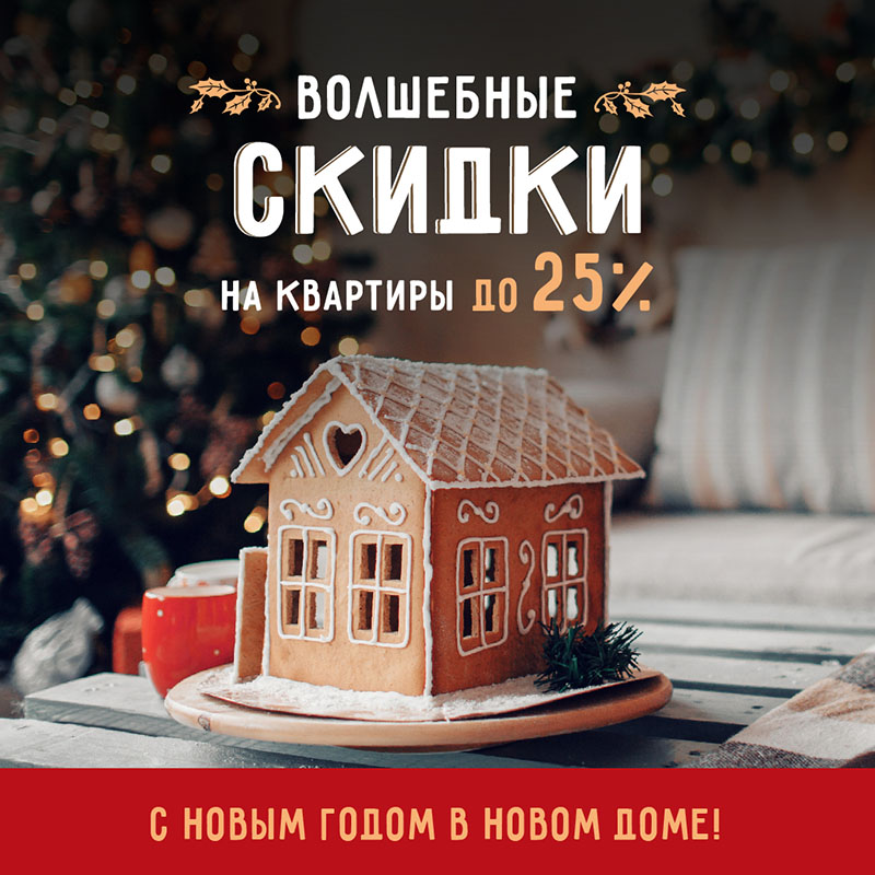 В честь наступающего Нового года, весь декабрь в ГК «Лидер Групп» действует беспрецедентная акция: скидка до 25% на новые квартиры.