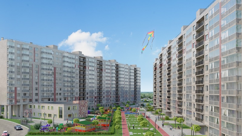 На придомовой территории будет выполнено комплексное озеленение, обустроены места для отдыха и занятий спортом. В центральной части двора расположится большая зона отдыха с детскими площадками и тренажерами, по внутреннему периметру будет проложена беговая дорожка.