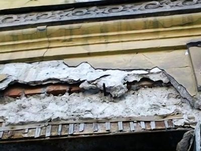 В Жилкомитете уточнили, что наиболее опасными нарушениями являются отслоение элементов декора (кронштейны под балконами, под карнизными свесами), дальнейшее отслоение штукатурного слоя в местах, где ранее были выполнены работы по обивке отслаивающейся штукатурки и не были выполнены защитные мероприятия по восстановлению фасада, где произошло отслоение, что приводит к дальнейшей деструктуризации кирпичной кладки.