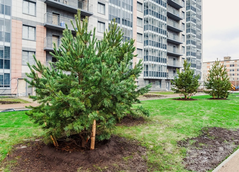 Благоустройство и озеленение территории завершено на 70%. Продолжаются работы по монтажу освещения – выполнено 55%.