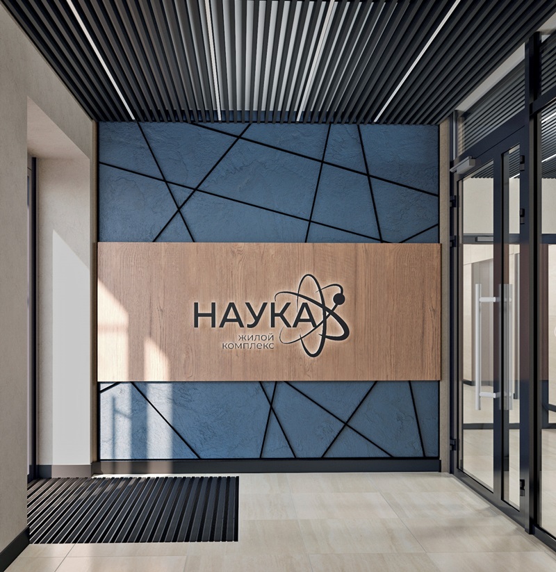 Парадные ЖК «Наука» выполнены в сдержанных светлых и глубоких тёмно-синих оттенках, гармонично сочетающихся с внешней отделкой домов. Холлы имеют большую площадь остекления, что в сочетании с высокими потолками создает ощущение пространства, полного воздуха и света. Отсутствие ступенек и крылец обеспечивает удобный доступ в парадные для всех категорий граждан. Дизайн-проект интерьера мест общего пользования выполнила компания «АДС-ПроектСтрой».