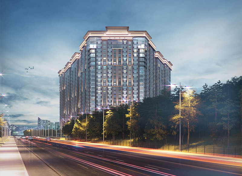 «ЖК LENINGRAD воплощает самые яркие преимущества проектов бизнес-класса: привлекательный внешний вид, удачное местоположение, высокое качество современных технологий, удобные планировочные решения. 24-этажный жилой комплекс возводится компанией «Лидер Групп» на проспекте Тореза, у Поклонной горы, в одном из самых экологически чистых, озелененных уголков Петербурга. Фасадные решения комплекса выполнены в стиле, известном как «сталинский ампир», объединивший в себе элементы неоклассицизма, барокко и ар-деко. Для этого архитектурного направления, получившего мировое признание, характерны величественность, парадность, роскошь и монументальность. Органично вплетенный в общий ансамбль существующей застройки, LENINGRAD сможет по праву претендовать на звание архитектурной доминанты северной части Санкт-Петербурга» – отмечается на официальном сайте конкурса.