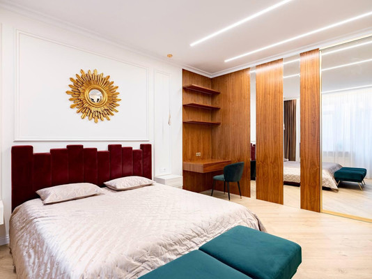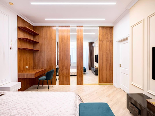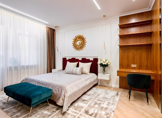 В квартире выполнен дизайнерский ремонт по индивидуальному проекту из высококачественных материалов. Мягкая мебель Eichholtz, мраморный стол, импортная бытовая техника, в одном из санузлов установлен умный электронный унитаз Vella, в ванной и в каждой комнате установлены телевизоры. Кондиционеры в спальне и столовой, сантехническое оборудование Omoikiri Timo, Jacob Delafon, на кухне бытовая техника Bosch, установлены дополнительные фильтры воды. Много мест для хранения. Управление светом в двух комнатах и регулировка штор с телефона. Электрика и многое другое продумано до мелочей. Вся мебель и техника остается новому владельцу! Окна выходят на две тихие стороны. Так же большое преимущество, что квартира расположена на последнем этаже и соседи сверху не будут вас беспокоить.