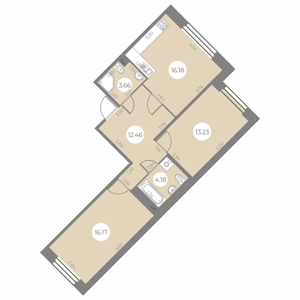 - Площадь кухни 16.18 м²