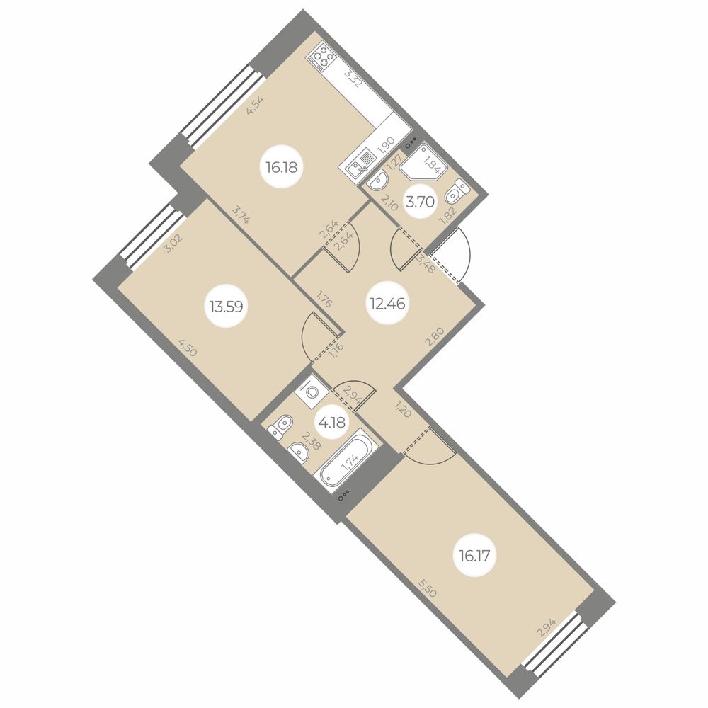 - Площадь кухни 16.18 м²