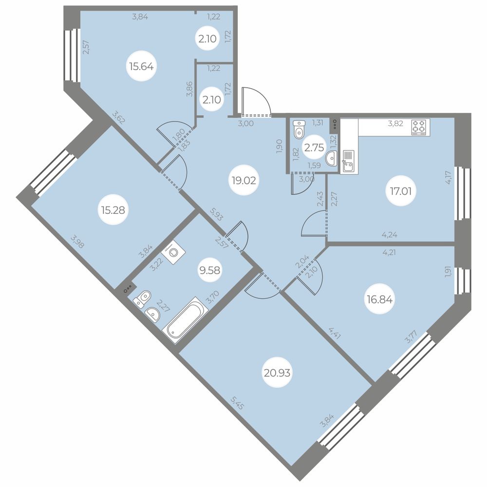 - Площадь кухни 17.01 м²